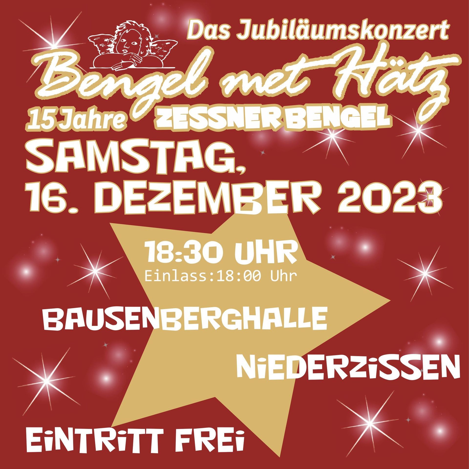 30 Kinder und Jugendliche des Kinder- und Jugendchores Zessner (B)engel und BIG BENGEL freuen sich am dritten Adventssamstag auf viele Zuhörer in der weihnachtlich geschmückten Bausenberghalle. Auf dem Programm stehen bekannte Advents- und Weihnachtslieder sowie Balladen und Songs, die von den beiden Ensemblen mit ihren Solisten und einer Band vorgetragen werden. Die Zessner (B)engel feiern mit diesem Konzert ihr 15-jähriges Bestehen. Einlass ist ab 18 Uhr mit freiem Eintritt. Wir freuen uns auf Ihr Kommen Die Zessner (B)engel und BIG BENGEL mit ihren Chorleitern Bianca Vater-Wolf und Detlef Wittke Zessner (B)engel Der Kinderchor Zessner (B)engel wurde 2008 von uns gegründet und ist seit 15 Jahren auf vielen Bühnen im Brohltal zu hören. Es singen Kinder im Alter von 6 bis 11 Jahren aus Niederzissen und der umliegenden Region mit. Die Proben finden immer mittwochs von 16 bis 17 Uhr statt und beginnen mit rhythmischem Klatschen und kindgerechter Stimmbildung. Im Repertoire des Kindeschores findet man meist jahreszeitliche und moderne Kinderlieder, die die Kinder bei Festen der Dorfgemeinschaft oder eigenen Konzerten gutgelaunt vorsingen. Auch bei Kreischorkonzerten oder Veranstaltungen des Kreis Ahrweilers trugen die Bengel zum Programm bei. Auf unserer Homepage können Interessierte unsere Aktivitäten in der Chronik oder im Youtube-Kanal musikalisch verfolgen. Neben den Proben und öffentlichen Auftritt finden kleine Feiern, Ausflüge ins Theater oder Freizeitparks und Chorwochenenden in Jugendherbergen und Freizeiteinrichtungen statt. BIG BENGEL Seit Mai 2011 besteht der Jugendchor BIG BENGEL für Teenager ab der 6. Klasse. Dieses Ensemble besteht aus den älteren Sängern der Zessner Bengel, die dem Kinderchoralter entwachsen sind. Die Songs tendiert hier mehr ins Englische und zu Pop und Rock. Häufig suchen die Sängerinnen die Lieder selbst aus, weil es uns wichtig ist, den Musikgeschmack der Teenager zu treffen. Bei Musicalproduktionen wie „Eine Feenreise“ (2015), „Ein Engel“ (2017) und „Coco Superstar“ (2019) sowie bei eigenen Weihnachtskonzerten kooperieren die BIG BENGEL mit dem Kinderchor. Wir freuen uns immer über neue Sängerinnen und Sänger im Kinder- und Jugendchor. Bitte sprechen Sie uns an oder kontaktieren uns über die Homepage www. zessner-bengel.de Mit musikalischen Grüßen Bianca Vater-Wolf und Detlef Wittke